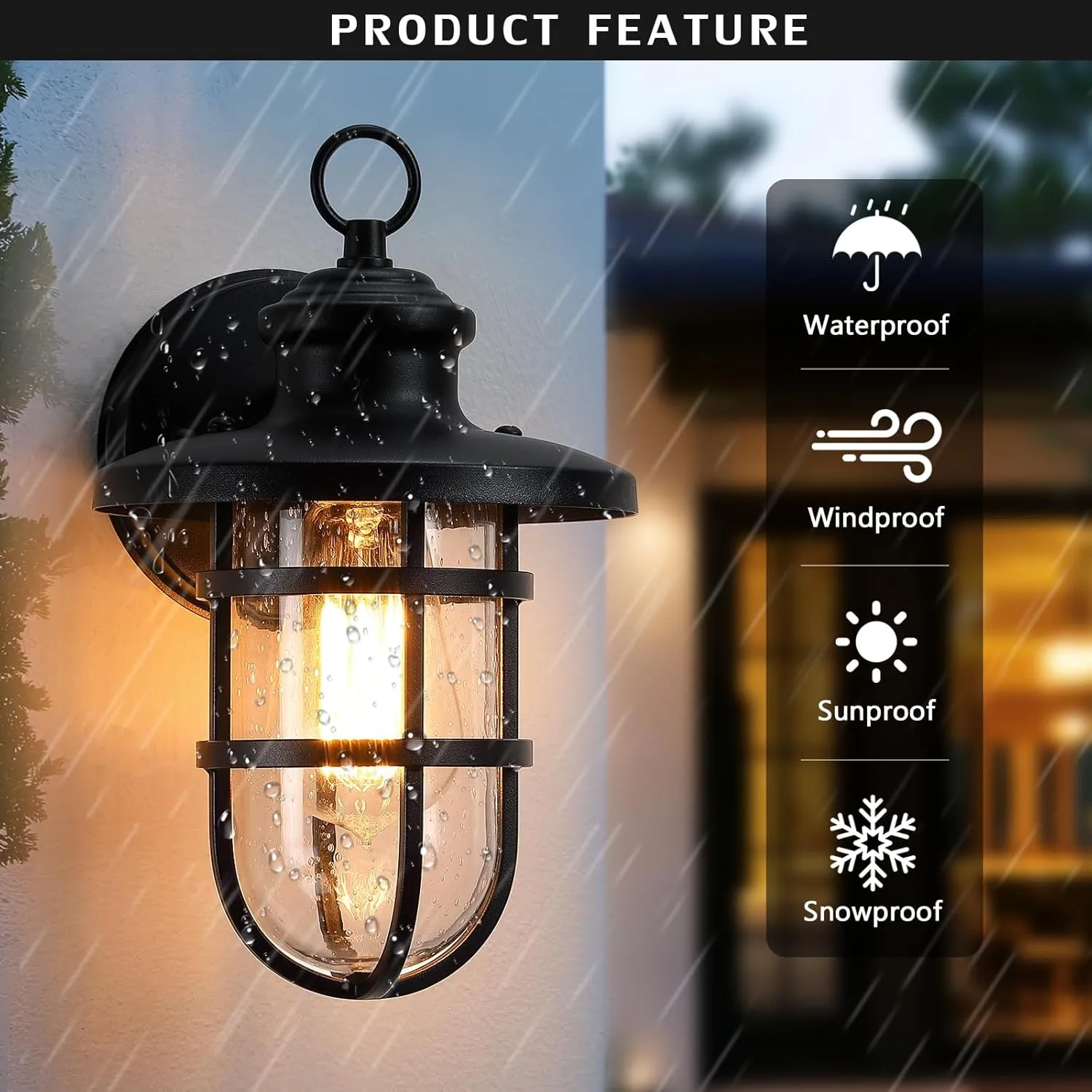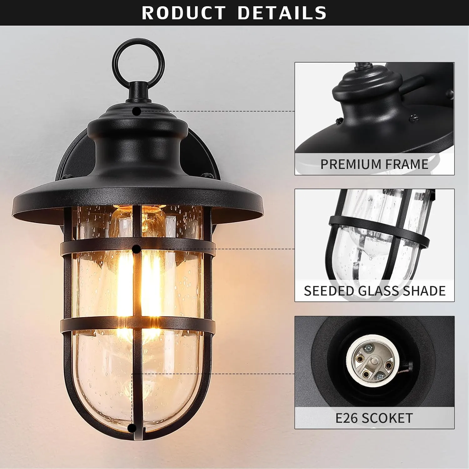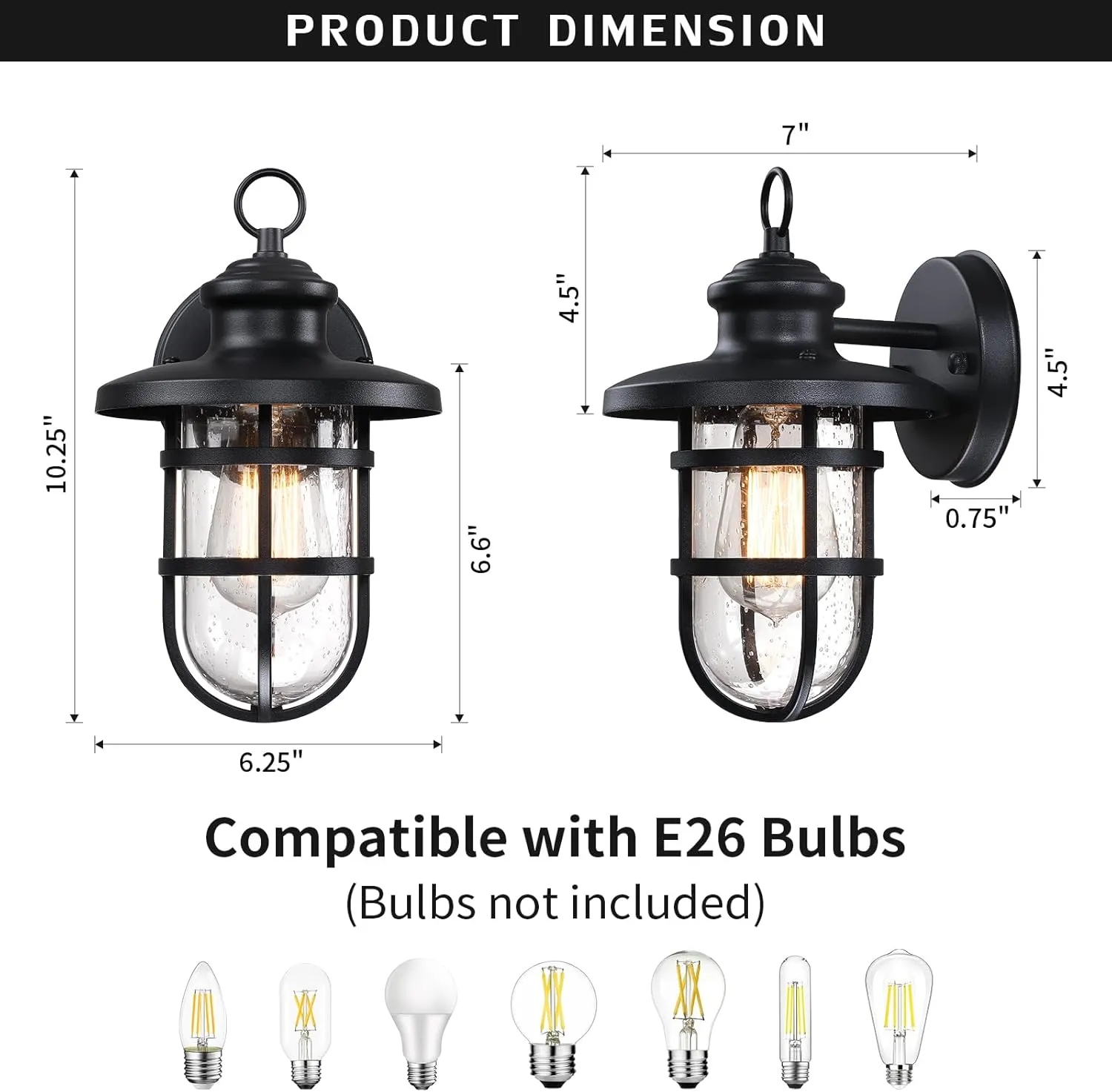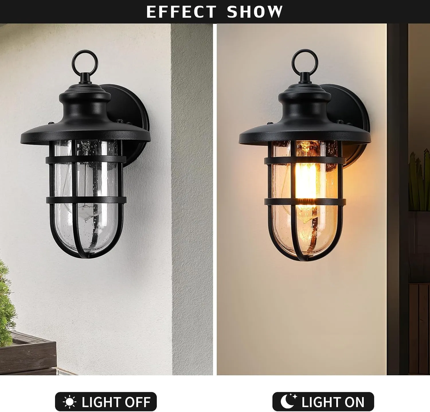 - 【High Quality&Weather Resistant】:The outdoor walll light fxiture is made of t high quality metal and seed glass shade,which can to be weather-resistant, ensures it is impervious to rust, corrosion, and wear and tear. In addition, Our wall light for house is expertly crafted to withstand diverse climatic conditions, such as extreme rains, snow, ice, and even overheated conditions, while also retaining its stylish appearance for your many years of usage.