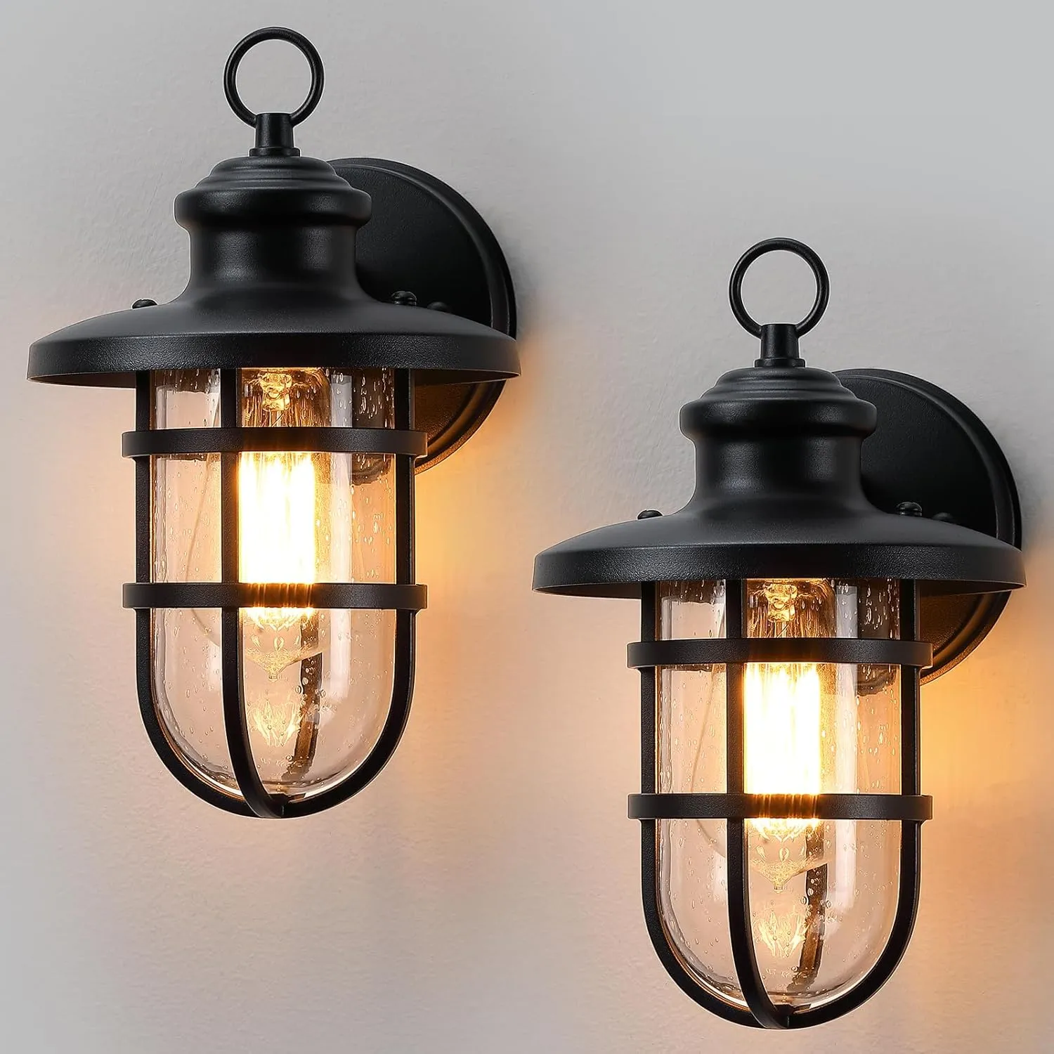 BD060-1 B06135P 2 Pack Outdoor Wall Mount, Outside Wall Sconce Lighting Fixture with Seeded Glass, Sand Black Waterproof Exterior Light for Porch, Doorway,Hallway Garage, Yard,Patio